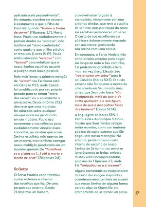 aplicada a ele pessoalmente”. No entanto, escolher ser escravo é exatamente o que o Filho de Deus fez quando“ tomou a forma de servo”( Filipenses 2:7). Nesta frase, Paulo usa cuidadosamente a palavra doulos ou“ escravo”, não misthios ou“ servo contratado”, como aquilo a que o filho pródigo se rebaixou( Lucas 15:19). Paulo então relaciona“ escravo” com“ tomou” para enfatizar que o nosso Senhor escolheu assumir a posição mais baixa possível.