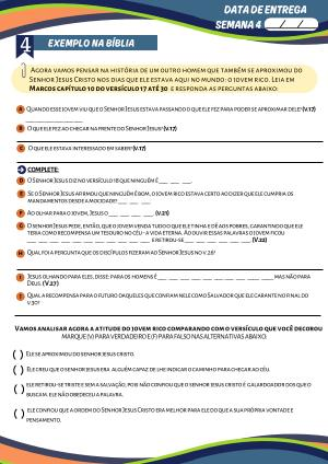 Agora vamos pensar na história de um outro homem que também se aproximou do Senhor Jesus Cristo nos dias que ele estava aqui no mundo: o jovem rico. Leia em Marcos capítulo 10 do versículo 17 até 30 e responda as perguntas abaixo: a